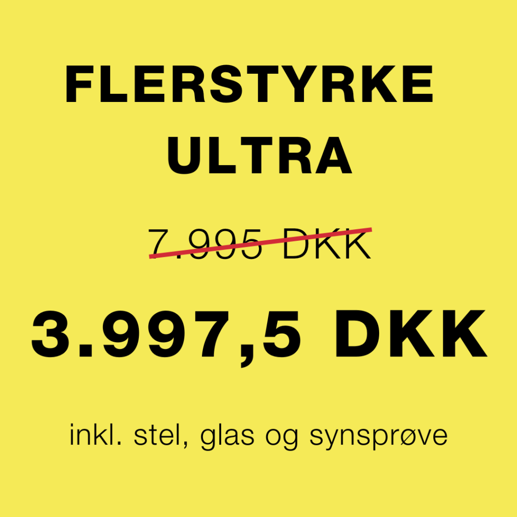 **Køb en brille med Premium+ eller ULTRA-glas og spar 50% på dit brillekøb.