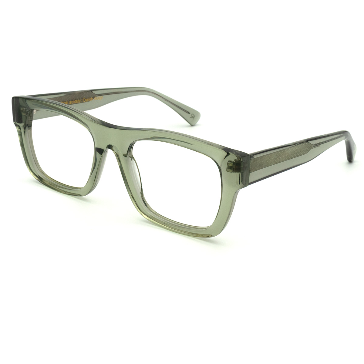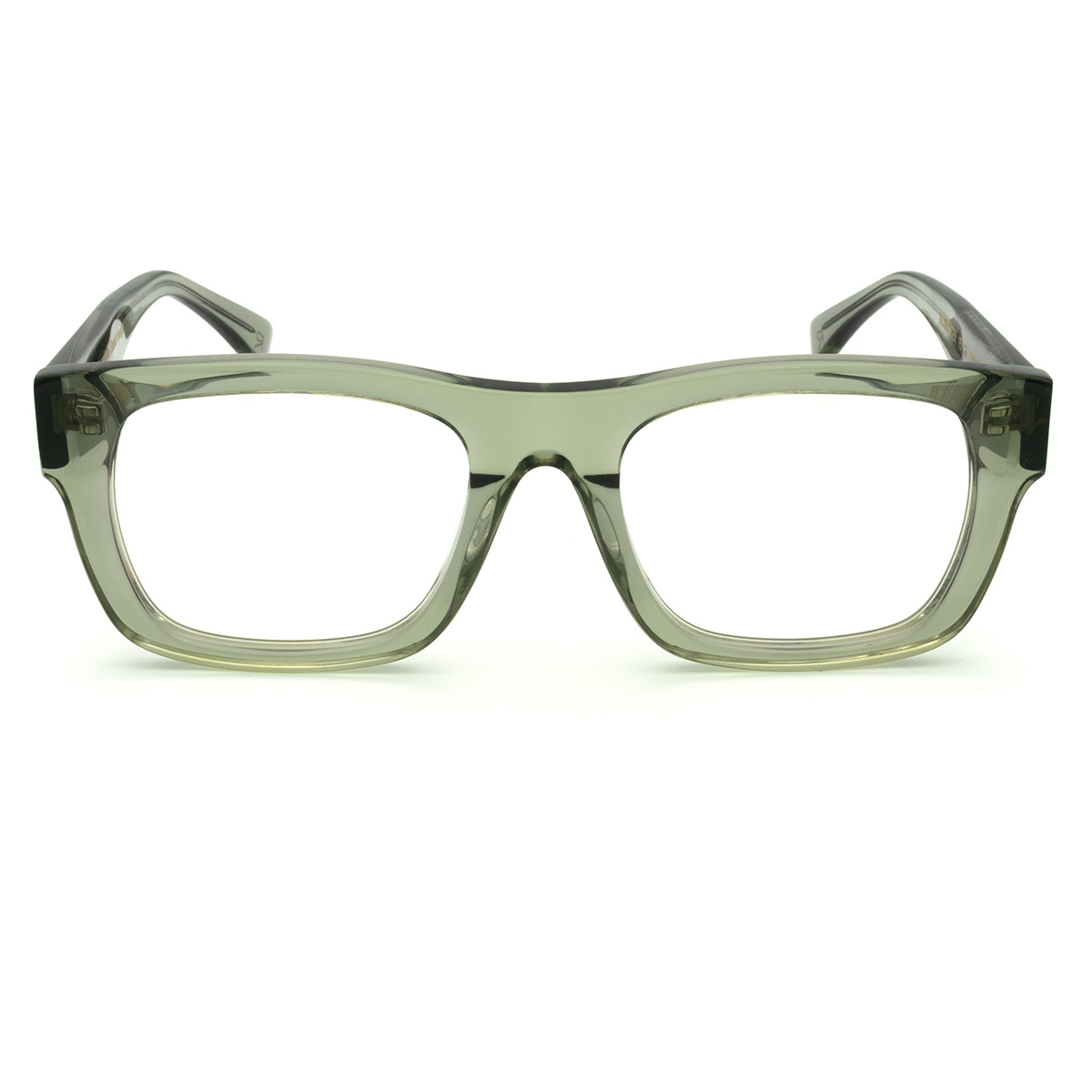 Dette firkantet brille i bio-acetat er designet til den moderne bruger, der søger en stilren og tidløs profil. Den mat grønne transparente farve giver stellet et friskt og sofistikeret præg, der fungerer perfekt til både kontoret og weekendens mere afslappede aktiviteter. Den robuste bro og de velproportionerede linjer understreger brillens maskuline karakter, mens det gennemskinnelige element tilfører en let og moderne dimension.