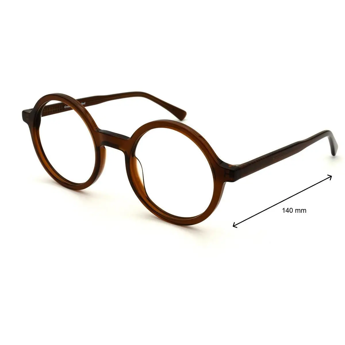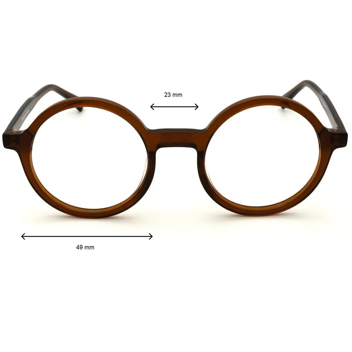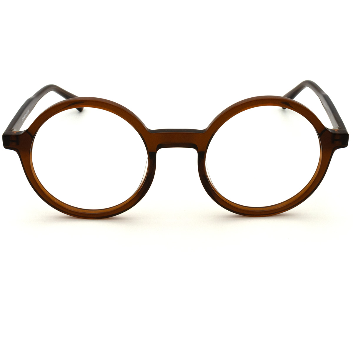 Disse runde briller fanger blikket med deres tidløse silhuet og varme, transparente brun farve. Den klassiske runde form giver et intellektuelt og sofistikeret udtryk, der passer perfekt til forskellige ansigtsformer og personligheder. Stellet er fremstillet i høj kvalitets acetat, som sikrer både holdbarhed og komfort gennem hele dagen.