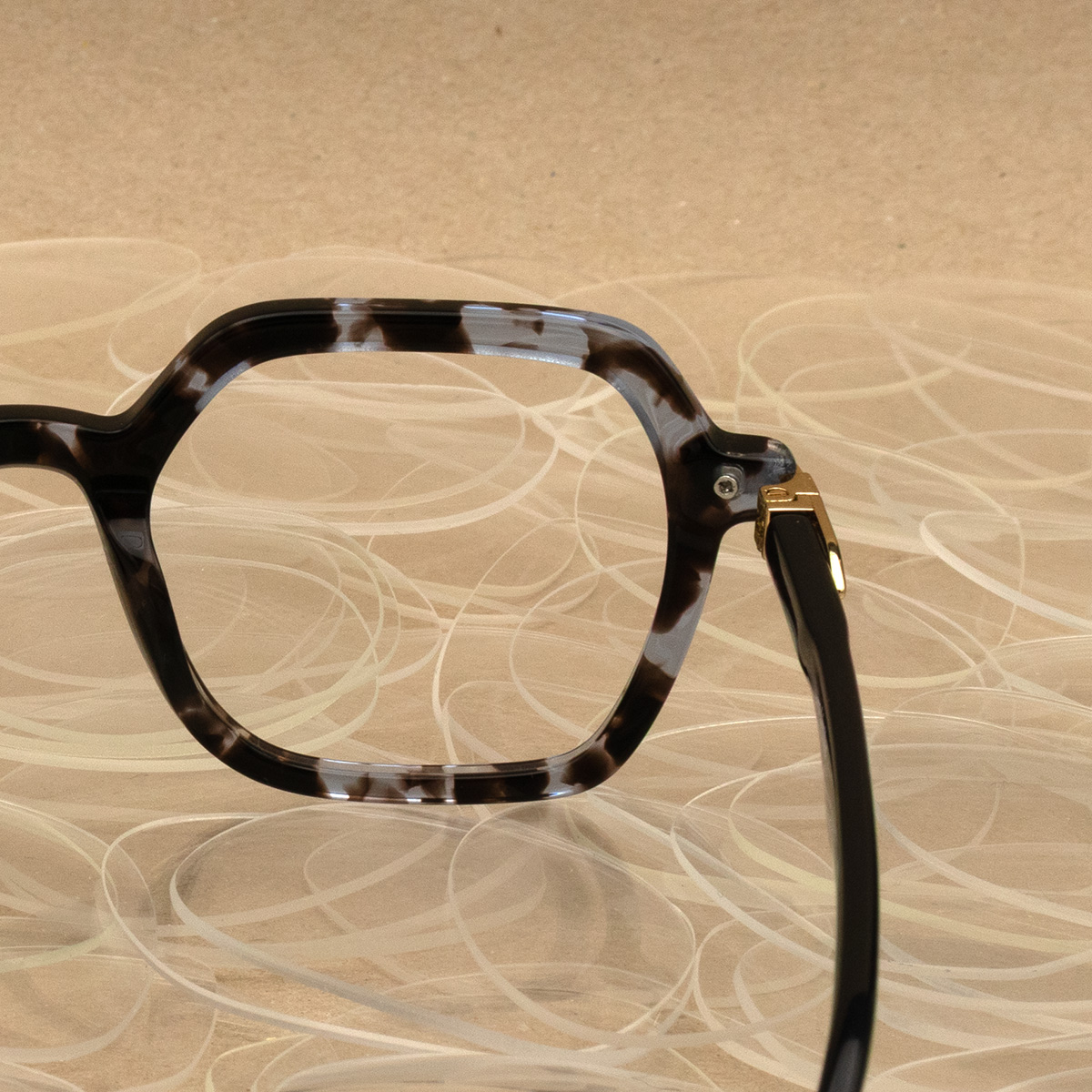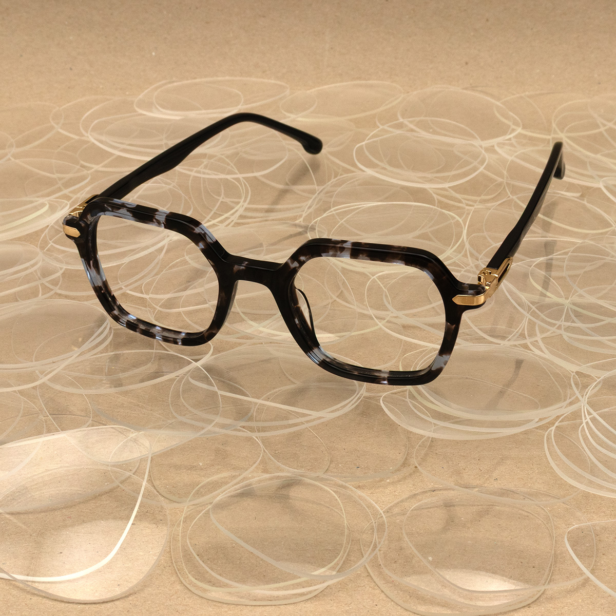 Disse markante briller kombinerer kraftfuld geometri med raffineret acetat i et slående mørkebrun og lyseblå skildpaddemønster. Den ottekantemiske rammeform skaber en perfekt balance mellem det runde og det kantede, hvilket giver et moderne og selvsikkert udtryk. Det distinkte farvesammenspil i acetatet gør hver brille helt særlig og tilføjer personlighed til ethvert look.