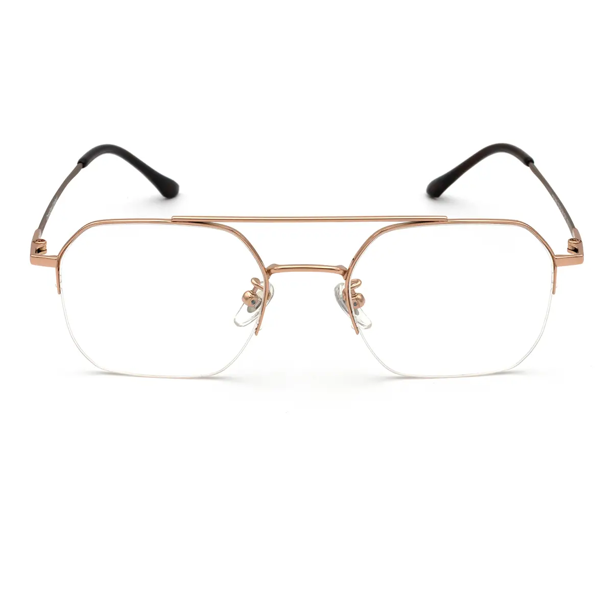 Denne elegante pilotbrille i metal fremhæver det klassiske aviator-design med et moderne twist. Den halv-randløse konstruktion giver et let og luftigt udtryk, mens den rosaguldne finish tilfører varme og sofistikering til looket. Den geometriske form med de næsten firkantede linjer skaber en interessant kontrast til de traditionelle runde pilotbriller og gør den perfekt til både formelle og afslappede anledninger.