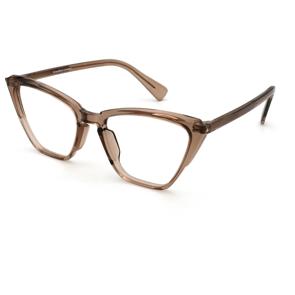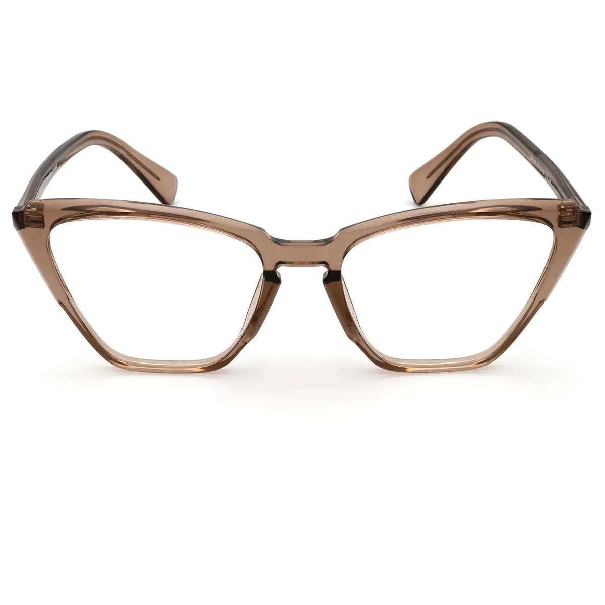 Det gennemskinnelige acetat materialer giver brillen et let og luftigt udtryk, der passer perfekt til moderne kvinder, som ønsker at kombinere funktionalitet med stil. Cat-eye formen fremhæver naturligt øjnene og giver et feminint løft til dit look, mens den transparente brune farve gør brillen utroligt let at style med både neutrale og kraftige farver i garderoben.