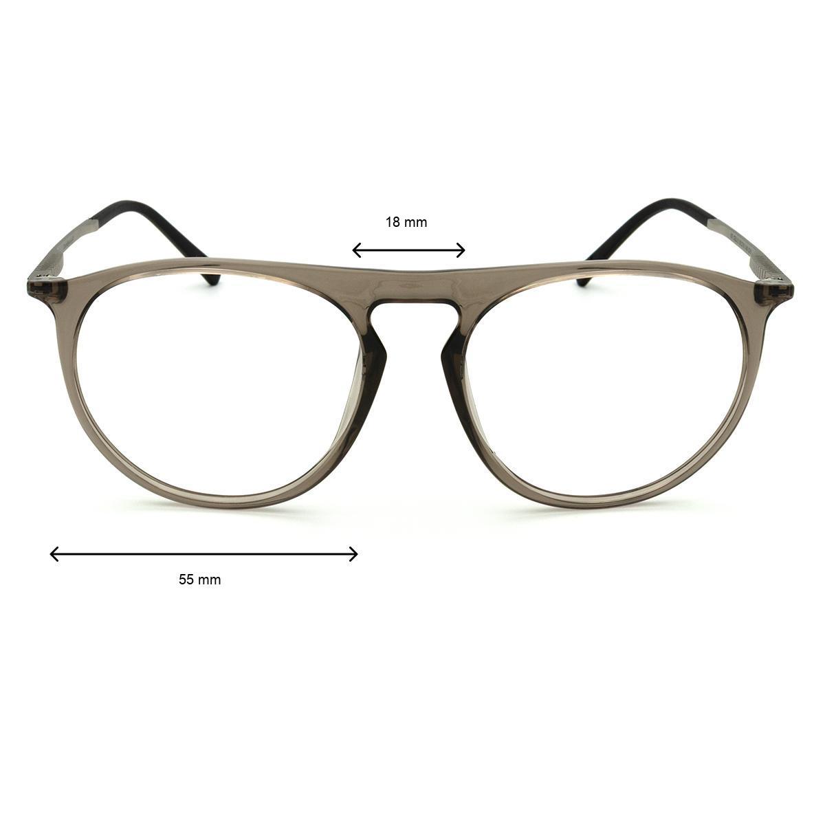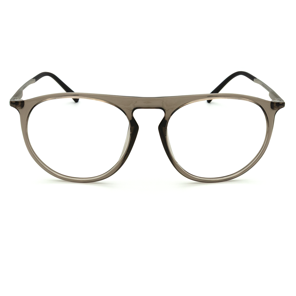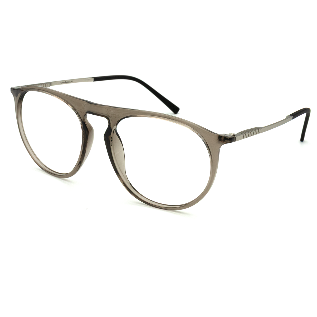 TR90-materialet gør brillen utrolig let at have på, samtidig med at den bevarer sin form og holdbarhed gennem daglig brug. Den gennemsigtige grå farve fungerer som en neutral base, der let kan styles med både casual og mere formelle outfits. De sorte stænger skaber en elegant kontrast til fronten og giver brillen et moderne twist på det klassiske aviator-design.