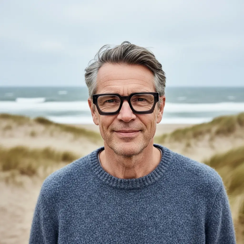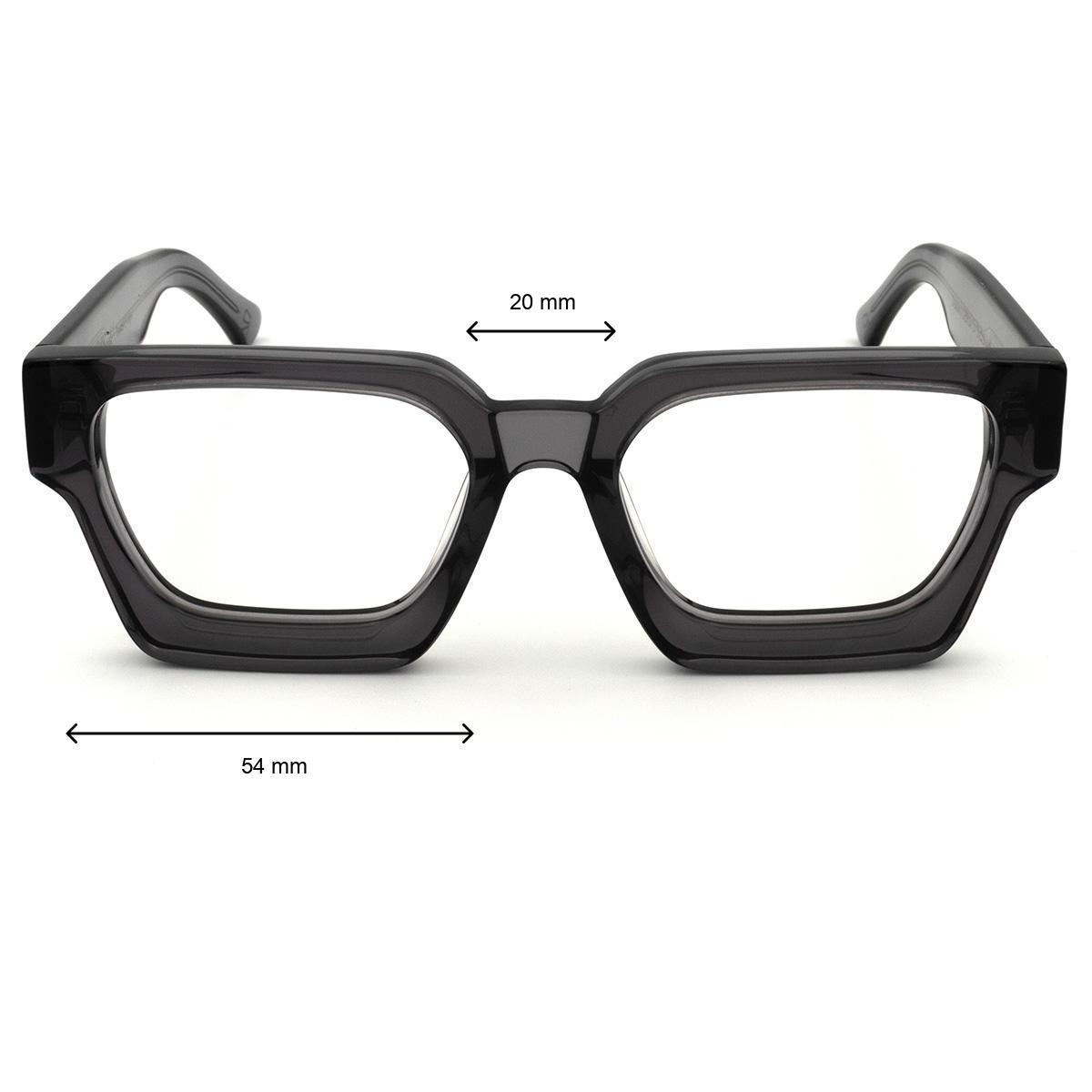 Dette markante firkantede stel fra RUSK-kollektionen forener det bedste fra skandinavisk designtradition med moderne æstetik. Den grå acetat giver stellet karakter og dybde, mens de rene linjer skaber et tidløst udtryk, der passer perfekt til både hverdag og særlige lejligheder.
