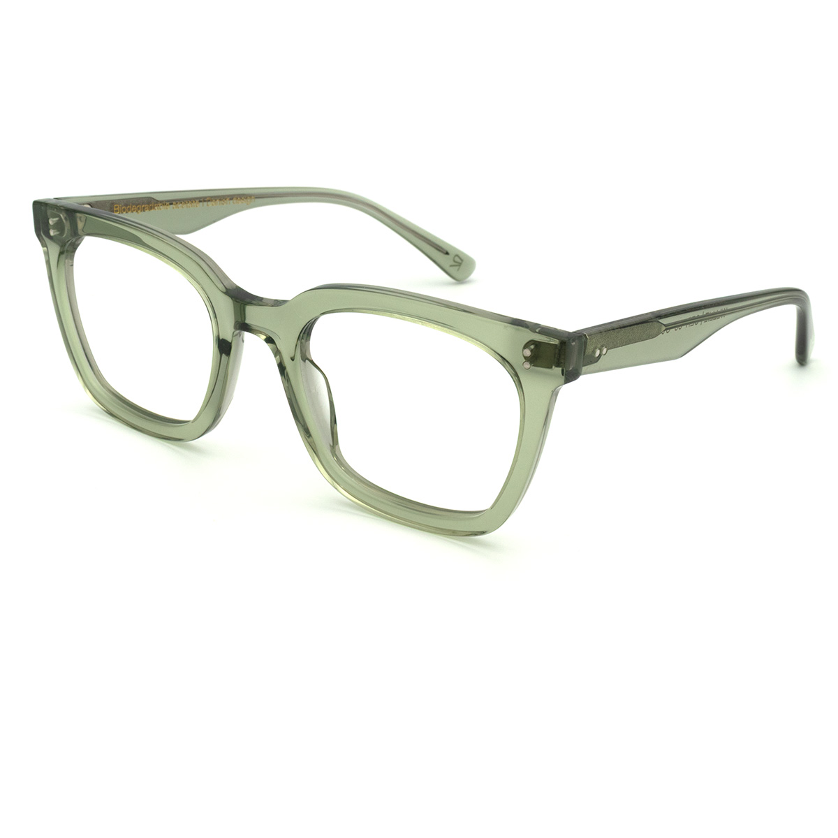Disse elegante briller i gennemsigtig grøn bio-acetat bringer en frisk og sofistikeret dimension til dit brillerepertoire. Den firkantet form med et subtilt katteøje-inspireret design skaber en flatterende ramme, der løfter blikket og giver en raffineret udstråling, der passer perfekt til både professionelle sammenhænge og afslappede hverdagssituationer.